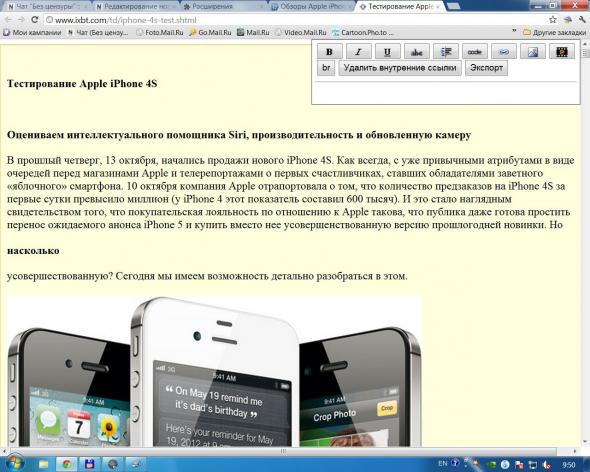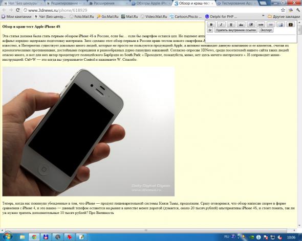 Вы бродите по интернету читаете блоги и новости и вдруг наталкиваетесь на статью, без которой, как вам кажется, на NNM не обойтись. И надо ее обязательно скопипиз… короче, сделать аналогичную новость на NNM. Попробуем это сделать с помощью визуального редактора. Далеко ходить не будем, мы для примера зайдем на Яндекс маркет и выберем какой-нибудь гаджет и перейдем по ссылке «Обзоры». Здесь типичные статьи про сотовые телефоны, с картинками и видео. Начинаем потрошить один из обзоров.