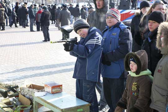 Чёрт. Ну зачем им противогазы в миротворческой миссии? а елезные палки, деревянные дрыны и рогатки с камнями зачем? Там есть огромный такой тесак — это обман зрения! Обычные перочинный ножик для разделки курицы!