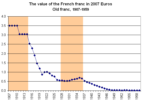Чувак, в 1938 году курс франка к доллару был 35/1. В 1942 году ВНЕЗАПНО! 1/1 и так до 1945 года. И в 1945 году опять 51/1. Тебе ничего не кажется странным?
