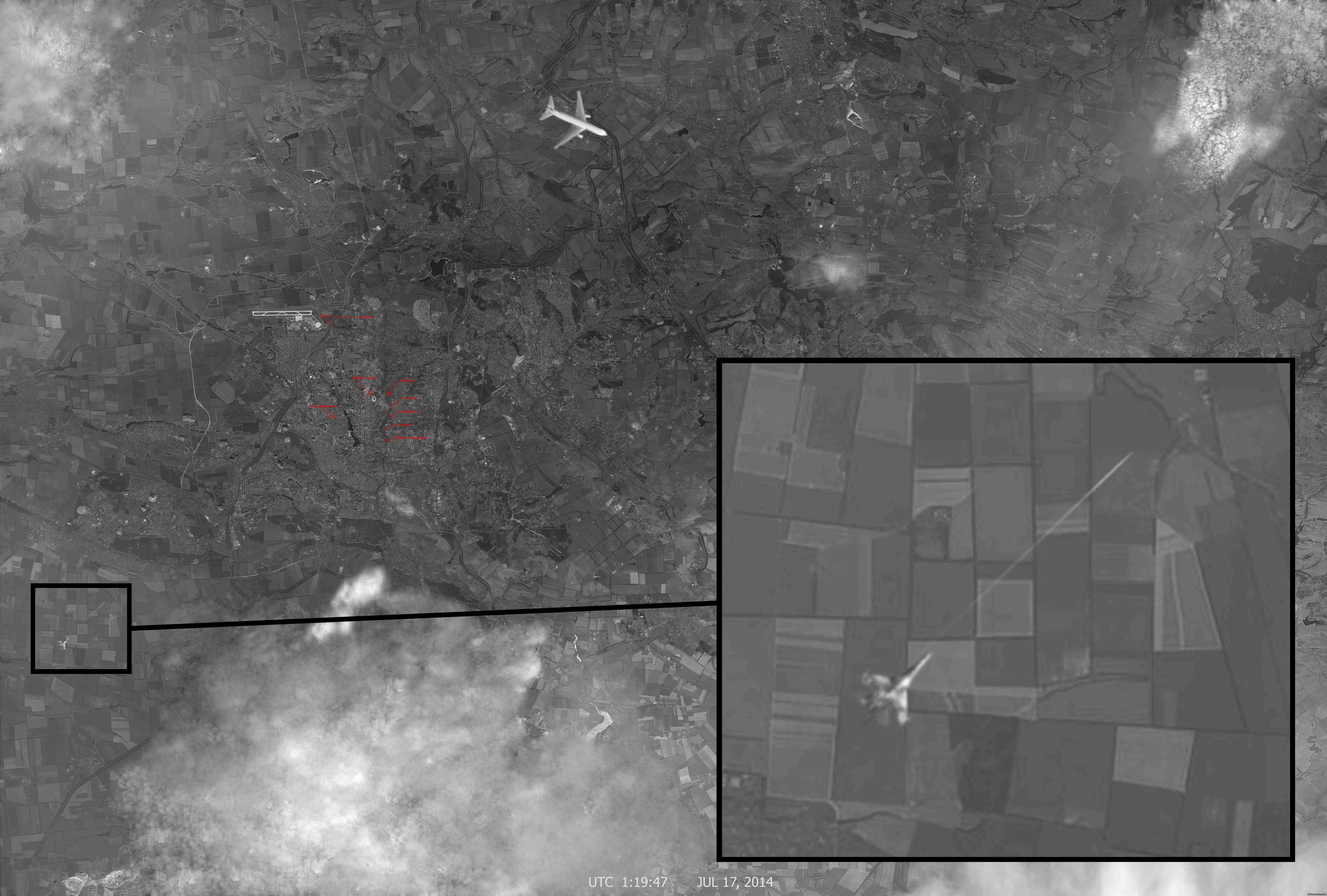 Russia claims this satellite image shows moment flight MH17 was shot down by fighter jet