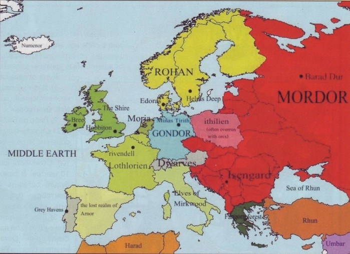 Мордор же отгороженный горами с запада, севера и юга это как аналогия железного занавеса СССР.