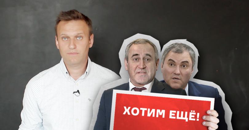 Оба находятся на вершине списка «Единой России» на предстоящих выборах. Как написал в своем блоге основатель фонда Алексей Навальный, Володин владеет участком стоимостью не меньше 160-ти миллионов рублей на территории дачного кооператива «Сосны». Неверов является его соседом. Его участок оценивается в 120 миллионов рублей, — говорится в видеозаписи.