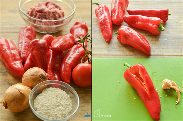 Чего-то так захотелось этого блюда и когда шел в турецкий магазин, надеялся что она там будет. Но, авось не получился, в это время айвы в продаже не бывает. Но разочарование было не долгим. На глаза попалась красивая красная паприка. Фаршировать, значит фаршировать.